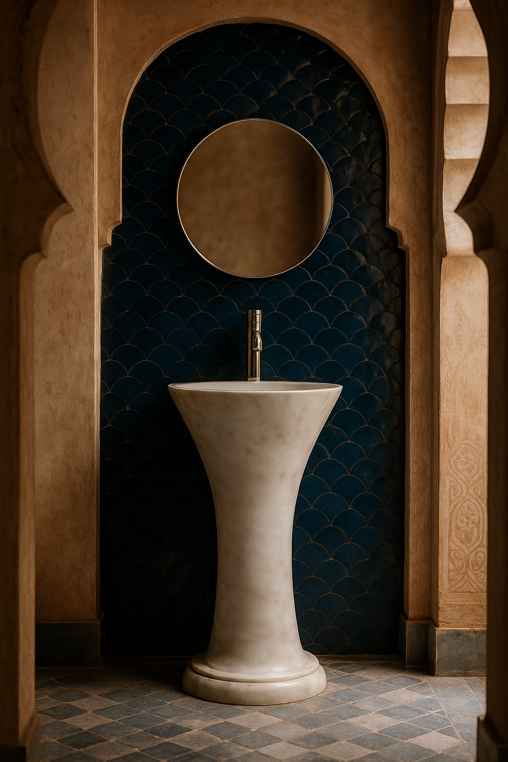Découvrez l’élégance sculpturale de la Vasque Colonne , une pièce maîtresse qui redéfinit le luxe dans la salle de bain. Entièrement façonnée dans un bloc de marbre noble, ses courbes fluides et sa silhouette épurée évoquent la grâce d’une calligraphie. elle s’impose comme un totem de raffinement, créant un point focal spectaculaire. Elle est le pont parfait entre le design contemporain et l’opulence des palais marocains, idéale pour ceux qui cherchent à fusionner modernité et tradition dans des espaces d’exception.