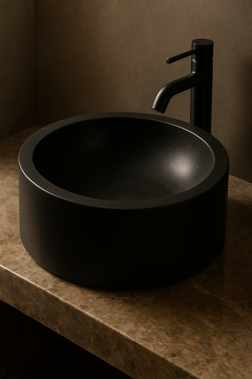 Sublimez votre salle de bain avec notre vasque en pierre noire au design minimaliste.