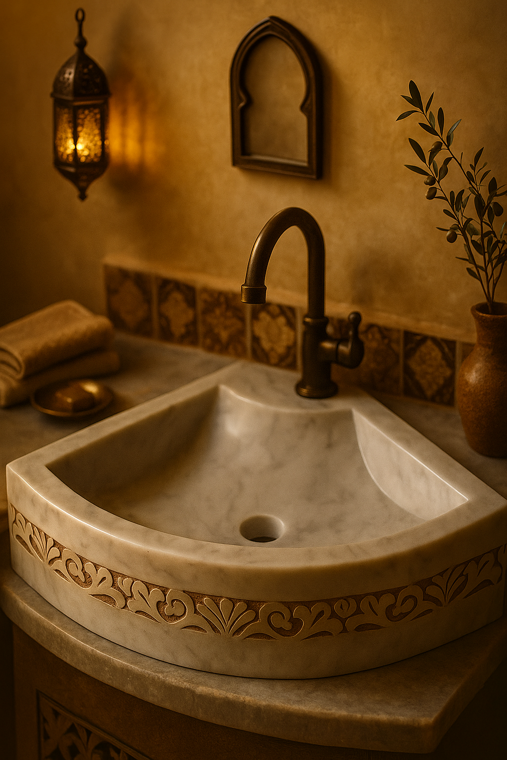 Ancrez votre salle de bain dans une élégance intemporelle avec la Vasque . Cette pièce maîtresse, est une fusion parfaite entre l’artisanat marocain et le design sculptural contemporain.