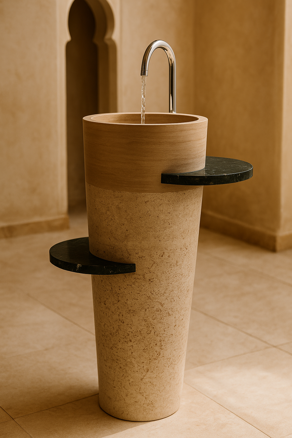 Découvrez la Vasque , une pièce d’exception taillée à la main dans une pierre naturelle noble. Son design cylindrique élancé évoque l’élégance minimaliste et la pureté des lignes architecturales marocaines.